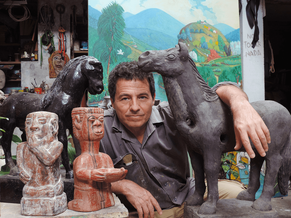 La devoción artística de Carlos Castillo data de los primeros años de infancia, cuando entre garabatos sobre la tierra y dibujos subastados en las aulas de clase, descubre su pasión por la estética y el significado. Años después, recién salido de la adolescencia, el joven artista decide dedicarse por completo a su obra. El espíritu de sus lienzos toma la forma de un criollismo propio y vibrante que lo lleva a las principales salas de exposición del Quindío, y más adelante, a Europa, en donde explora las raíces del arte hispanoamericano. En el año 1995, guiado por su curiosidad en la obra plástica indígena y la vastedad de posibilidades a nivel escultórico, se obsesiona con la búsqueda de una técnica propia. Un largo proceso de ensayo y error, que, doce años después, desemboca en la invención del PDR. Su primera amalgama ecológica con los rasgos que tanto había anhelado: plasticidad, dureza y resistencia. Desde su retorno a Colombia en el 2011, el artista continúa exponiendo y experimentando con la creación de técnicas escultóricas cada vez más livianas y medioambientalmente solidarias. Con su más reciente iteración, denominada KAREM, esculpe cada vez más pistas frente a la pregunta que lo inició como inventor: ¿Qué habría sido de la obra plástica indígena de no haber ocurrido la conquista?